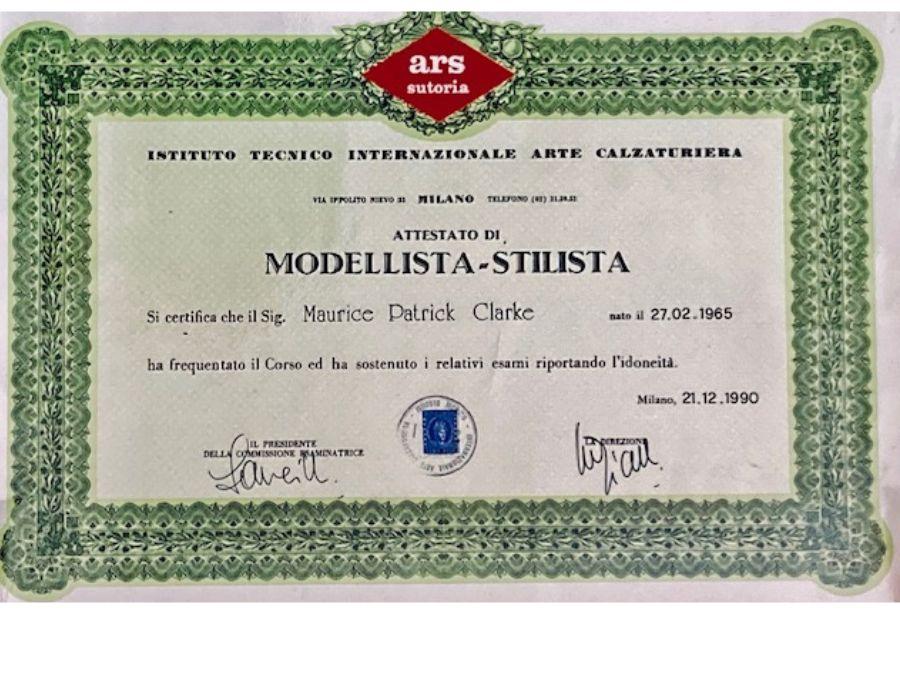 In 1988/89 while studying Footwear design on a two year National BTEC diploma course at Corwainers Technical College in London, Maurice won ‘The Royal Society for the Arts’ design bursaries award 1988 which allowed him to attend the ARSUTORIA SCHOOL Milan 1990, after-which he set up his design studio in Florence and worked as a freelance consultant for luxury good brands in New York, London, Milan,Tokyo, Hong Kong, Paris, Shanghai, Munich and Dubai among others until 2018.